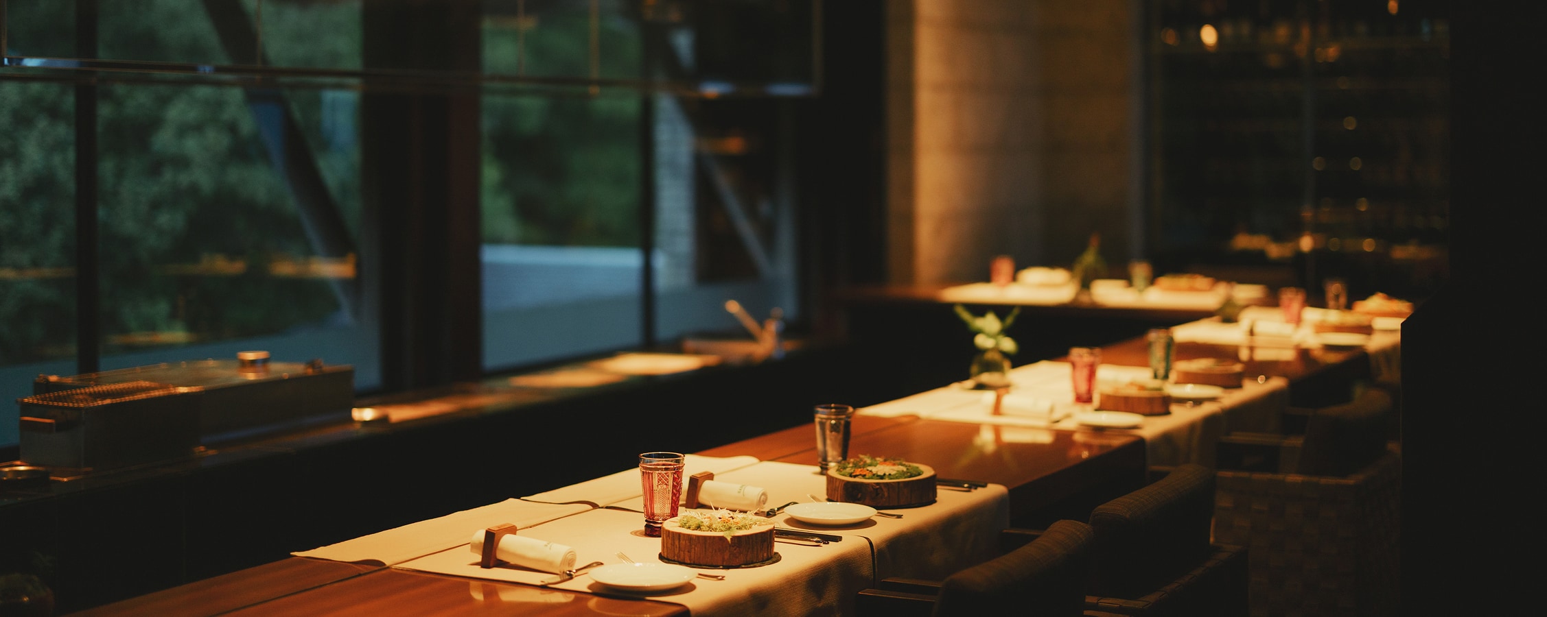 オーベルジュの顔である二つのレストラン。カジュアルにご利用いただける「ayana(アヤナ)」と、本格的なフルコースをご堪能いただける「okas(オーカス)」。その時々にふさわしい食材を選び、一皿ごとに趣向を凝らした料理をご提供いたします。