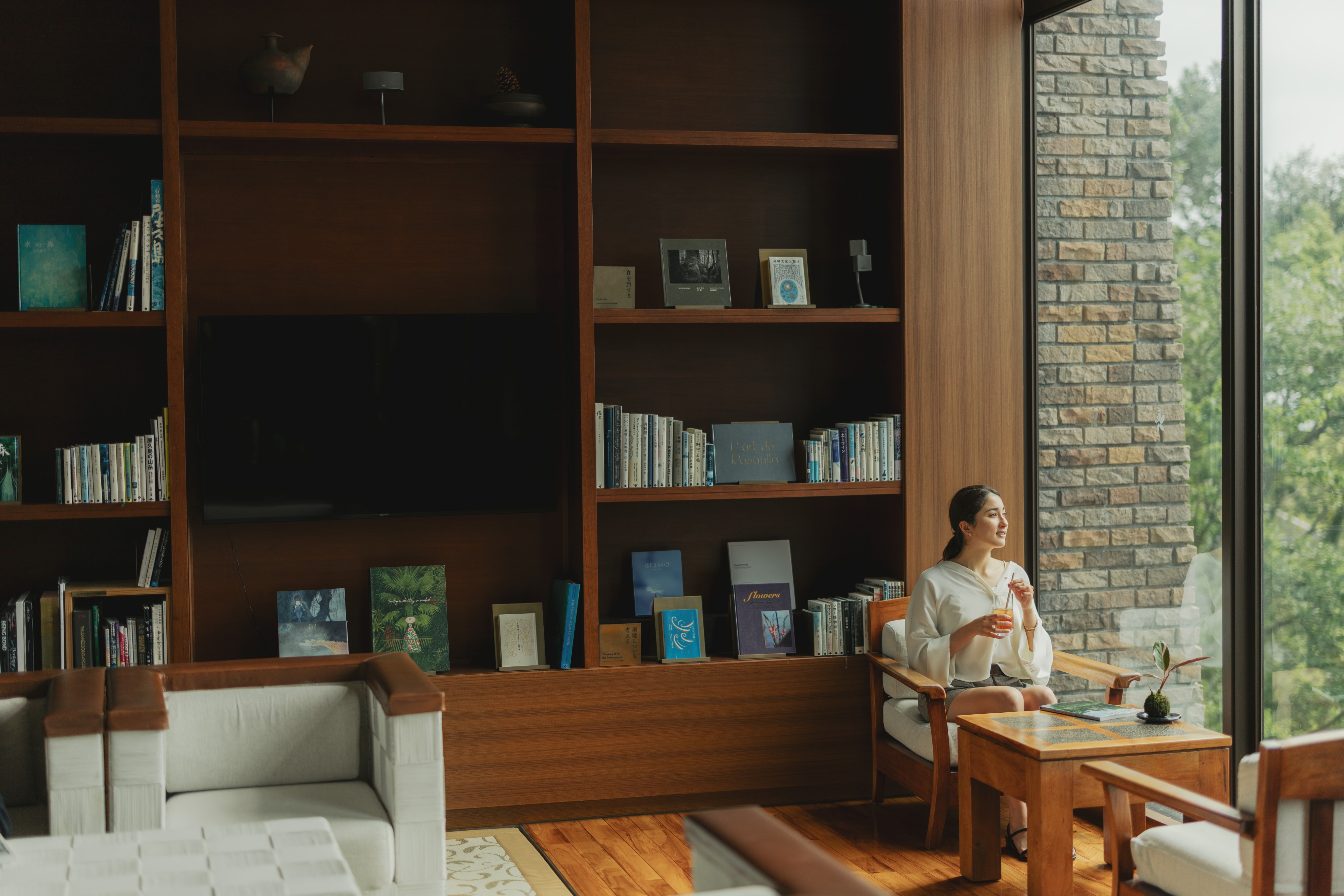 ブックディレクター幅允孝氏プロデュースによる屋久島や食、ワイン、サウナまで、200冊以上の書籍が並ぶライブラリーラウンジは、24時間ご利用いただけるプライベート感あふれる空間です。ご滞在中はフリーでドリンクやスイーツ、食前酒、食後酒をご用意。都会の喧噪を忘れ、思索の旅に耽るひとときをお過ごしください。