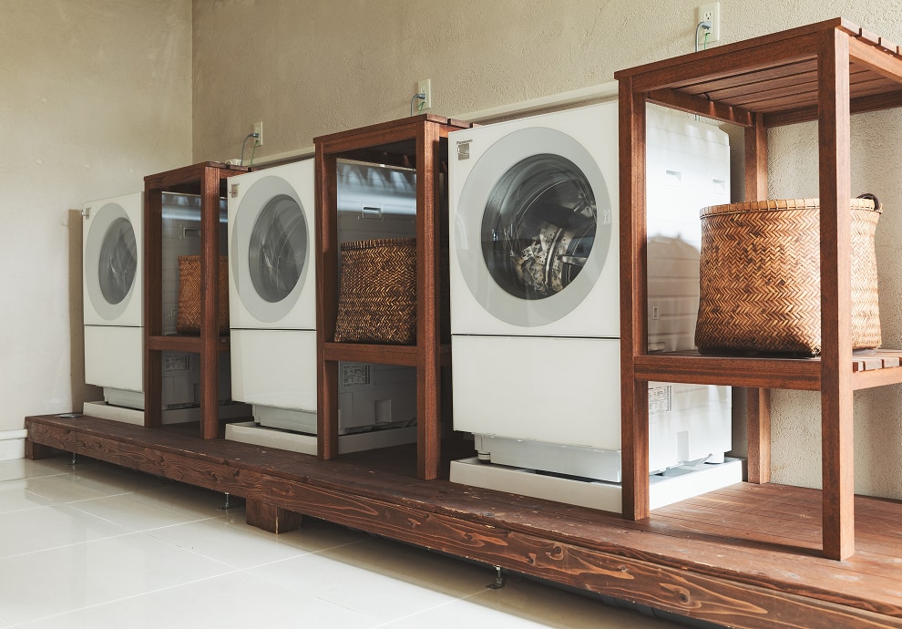 24時間ご利用可能なセルフランドリーがございます。洗剤や洗濯ネットも備え付けております。