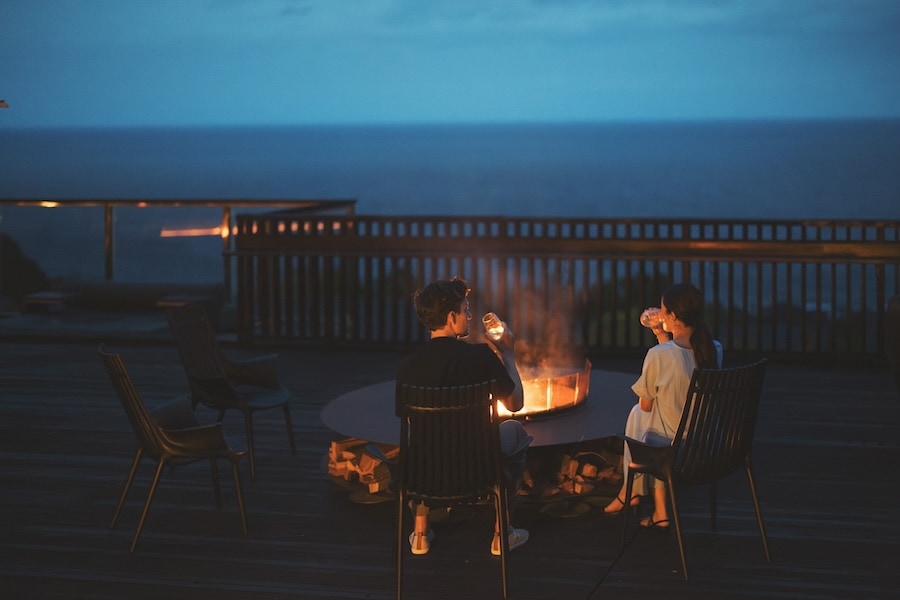 夕暮れ時からディナーの後など、燃える炎を見ながら星空観察などお楽しみいただけます。使用する薪は屋久島の地杉などの、台風で折れた樹々や端材を使用しています。