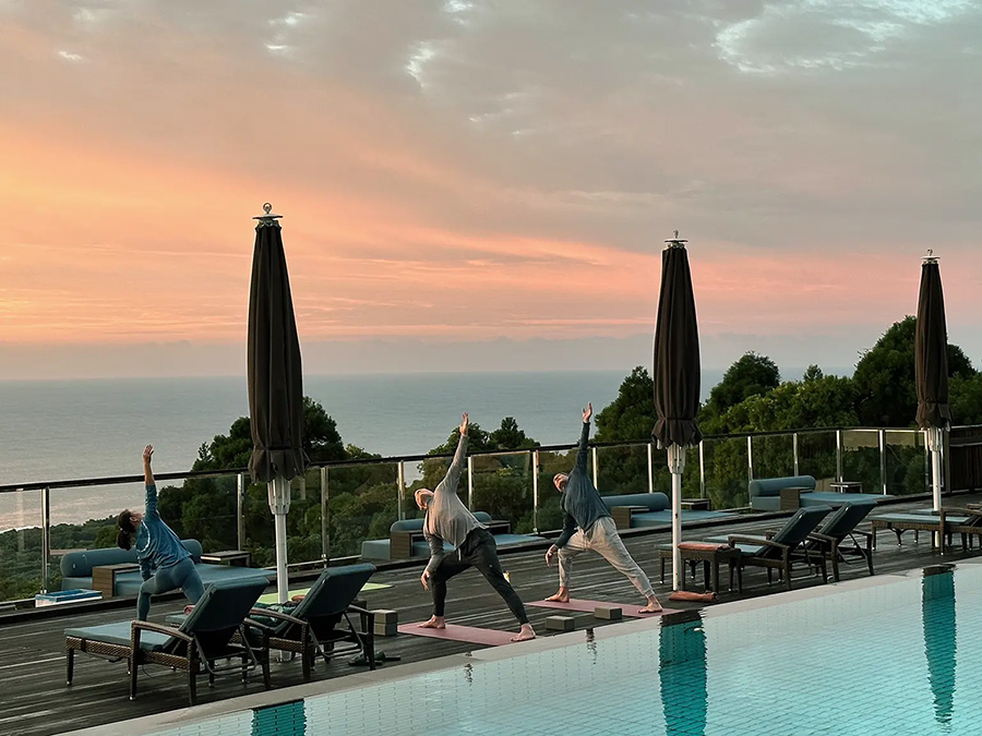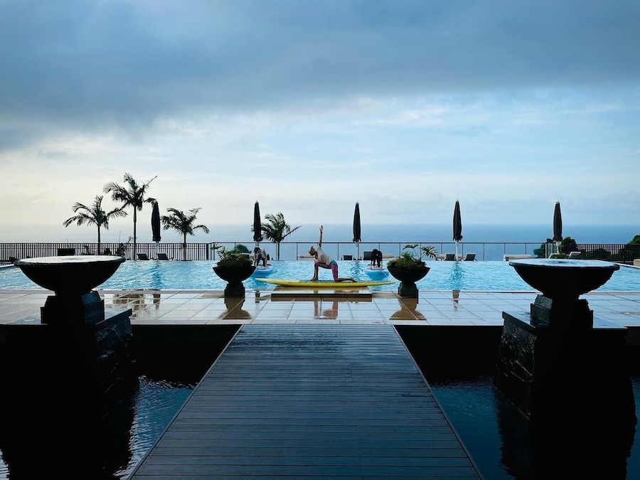 屋久島の大自然に包まれたインフィニティプールで行うSUPヨガ。風や光を感じながら、非日常のひとときを体感できる、sankara hotel & spa屋久島ならではのアクティビティです。(7月~9月限定)