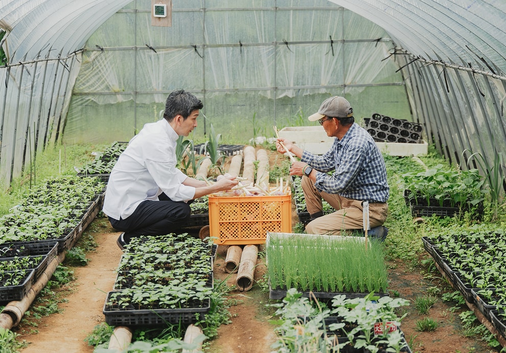 sankara hotel & spa 屋久島が最も大切にしているコンセプトは地元の旬の食材を使うこと。地元の農家さんや漁師さんとの関わりを大切にし、シェフが自ら食材探しの旅にでかけることで食材のこだわりや特長を直接見聞きし、料理のヒントにつなげています。また、sankara hotel&spa 屋久島で出た生ゴミを地元の養鶏農家さんへ提供し、肥料として有効活用していただく取り組みも行なっています。