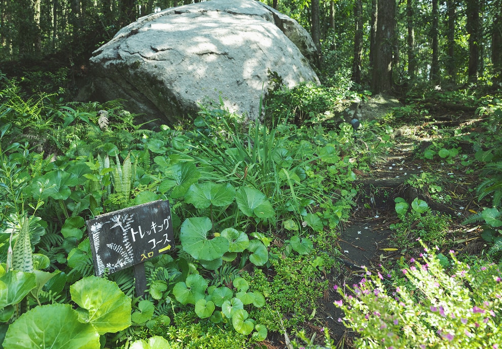 sankara hotel&spa 屋久島の裏手に広がる「麦生の森」は古くから屋久島とその住民に寄り添い、集落の人たちの生活の森であり、奥岳へ登拝する山岳信仰の道のりの入り口でもありました。近年、国内でも希少な植物たちの生息が確認され、生物多様性の保全の観点から未来へ残すべき貴重な自然です。林内の歩道は、古来の手法に規範を求めた近自然工法を利用し最小限の整備が行われています。