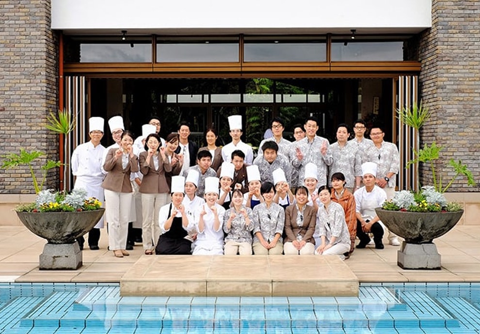 私たちは国籍や性別を問わず、様々なバックボーンを持つ人材の採用と皆が長く働きやすい職場環境づくりを目指しています。また、インターンシップの積極的な受け入れや従業員の資格取得を支援し、能力向上を促進しています。シェフによる山野草講習会やソムリエによるワイン講座、専属ガイドによる屋久島の研修など、スタッフのスキルアップの為の講習会を開いています。